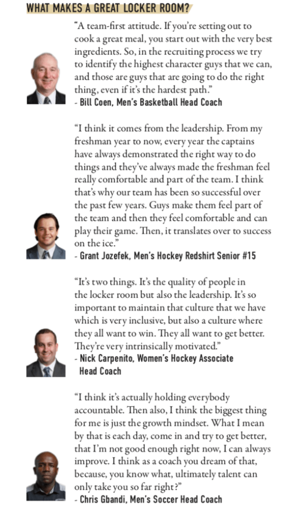 “Culture” is the ultimate buzzword, it can create dynasties or cripple and break up talented teams. Locker room culture is crucial in how a team blends and develops. Getting a perfect balance is something every coach and captain strives for. But this begs the question, what exactly makes a great locker room? Here is what coaches and players from a variety of sports at Northeastern University had to say.