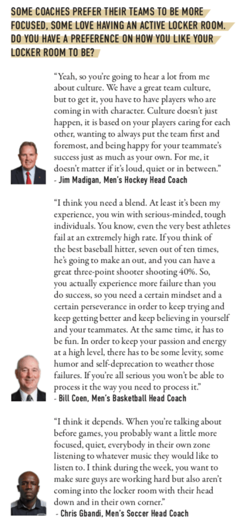 After talking to athletes and coaches across four different sports, it’s clear that having accountability, a drive to work hard and support one another are the real fundamentals of having a truly great locker room – whether the locker room is one tiny area, spread out across three rooms, or on a pool deck. With the world how it is today, the teams have seen a threat to how they bond together, but it only seems appropriate that, as they do in their respective sports, they’ve risen to adversity and kept their locker rooms tight knit and united, and ready for competition to return.