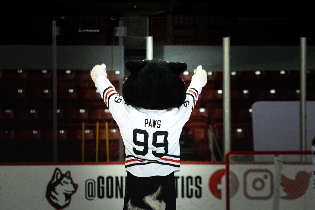 Arms waving in celebration, a large Husky sporting a Northeastern jersey glides across the ice at a hockey game, riling up the crowd – the image of Paws has been a Northeastern staple, embodying the energy of students from its position on the field.